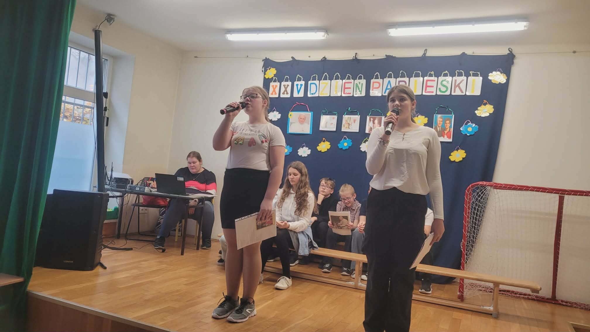 Uczniowie pod opieką p. Eweliny Sosnowskiej przygotowały program słowno - muzyczny. Ten dzień to wyraz naszej wdzięczności za pontyfikat papieża Polaka.