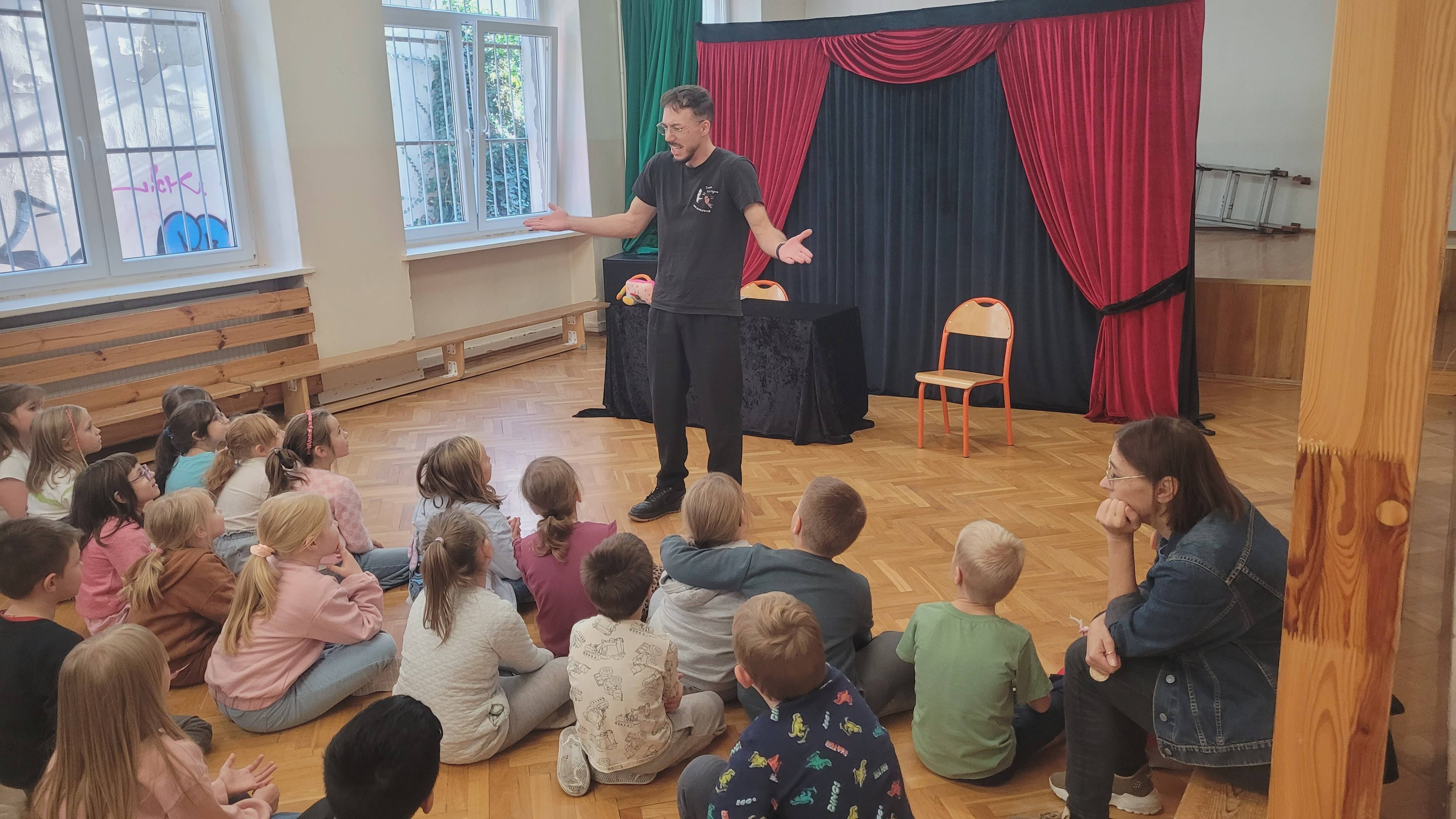 Klasy 1-3 obejrzały przedstawienie „Mruczek”, klasy 4-6 – „Smart Home”, klasy 7-8 – „Człowiek bez twarzy”.