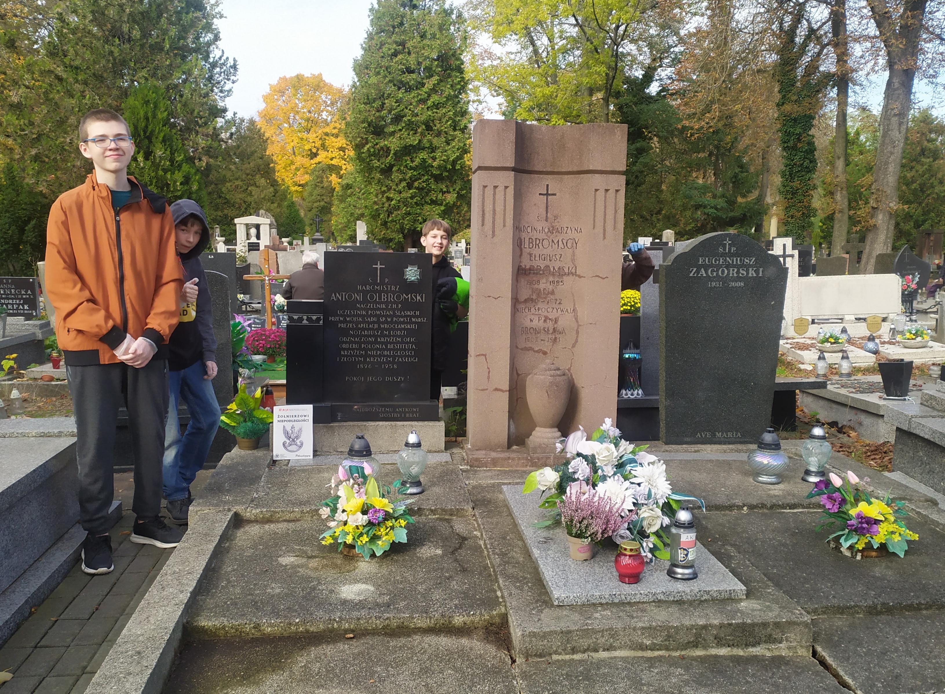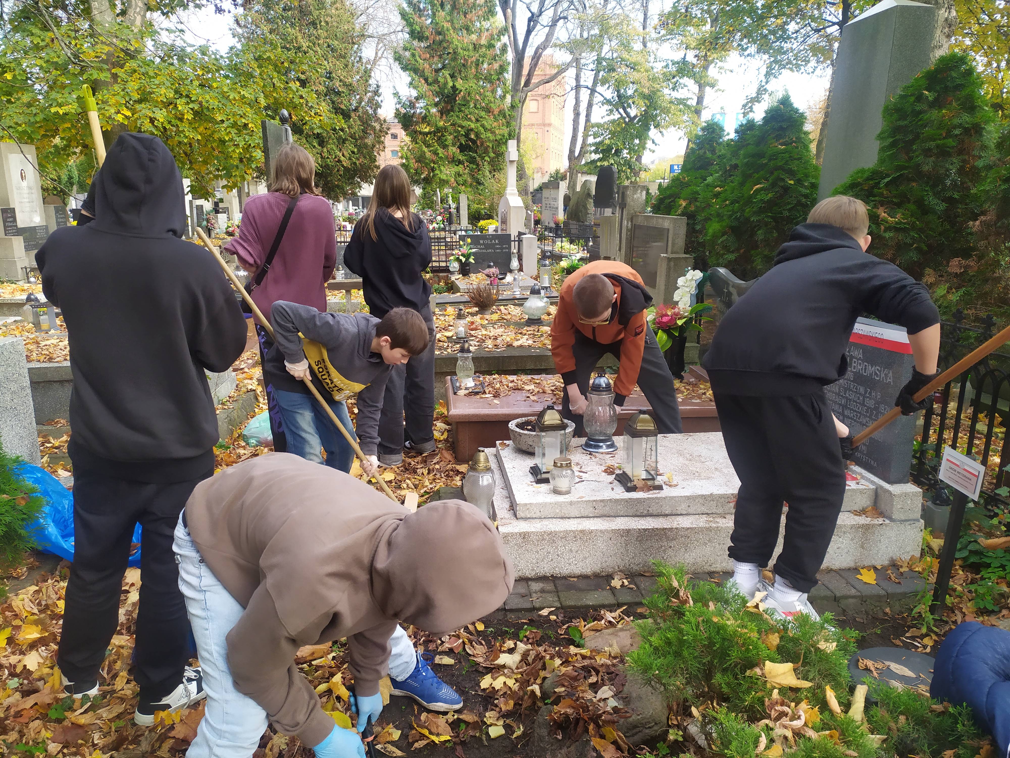 W październiku wolontariusze pod opieką nauczyciela historii uczestniczyli w akcji porządkowania nagrobków żołnierzy - powstańców śląskich, łodzian, którzy spoczywają na Starym Cmentarzu w Łodzi w części katolickiej.