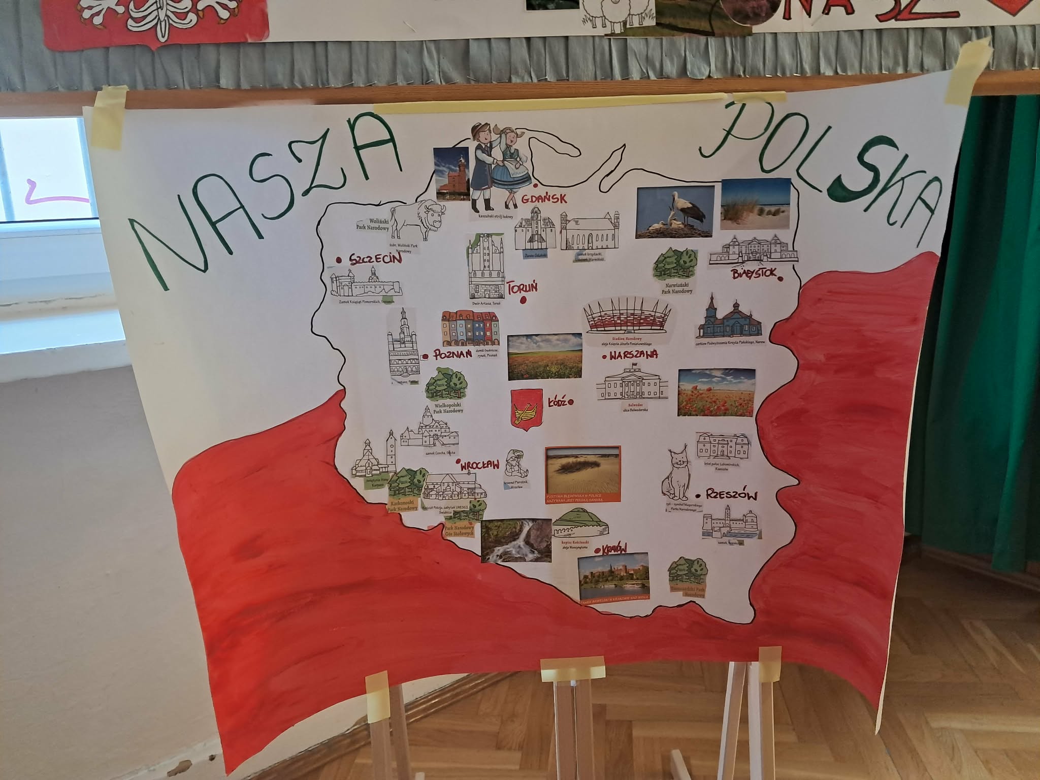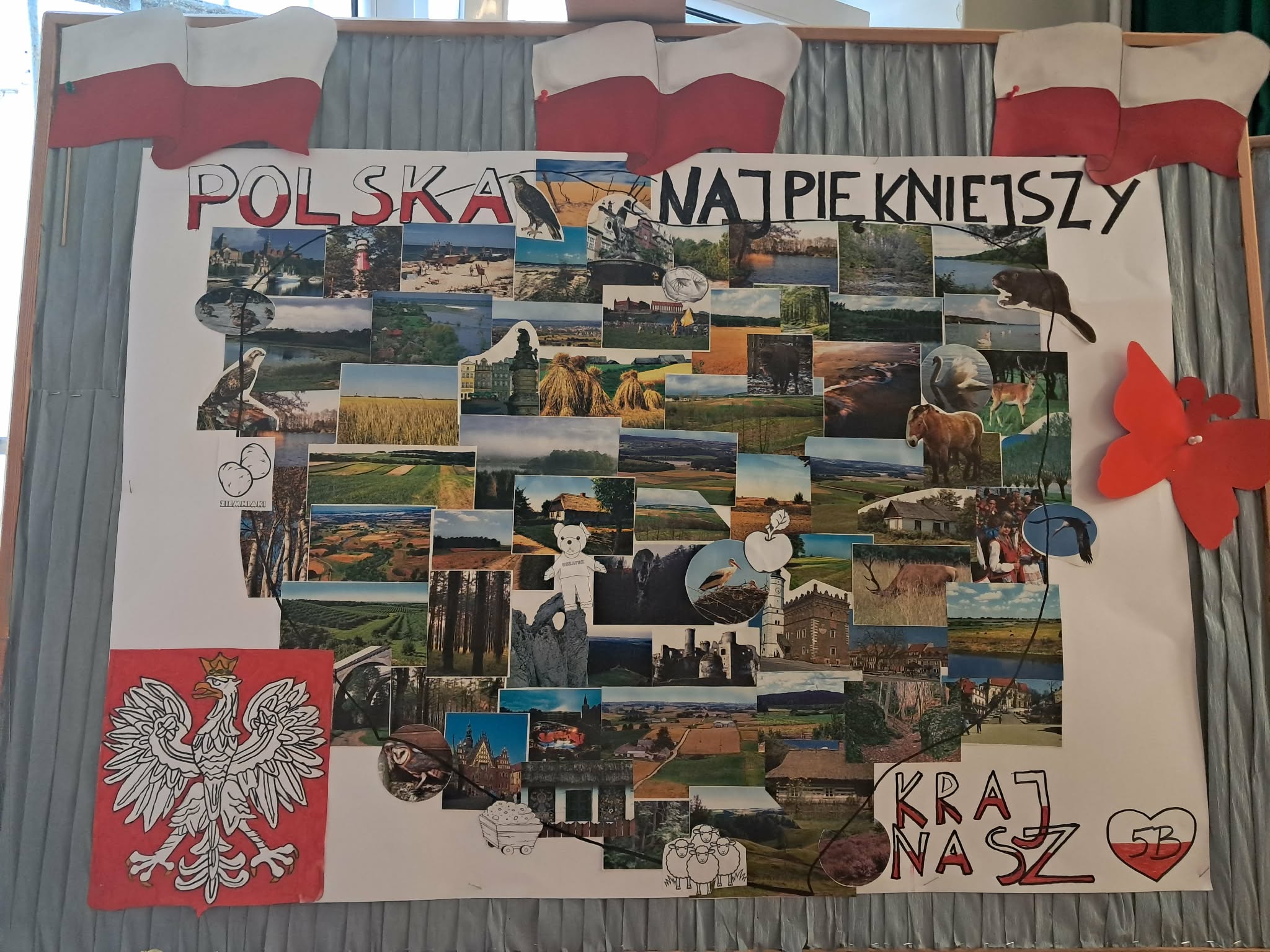 Każda klasa przygotowała plakat pod tytułem "Polska to kraj piękniejszy od innych. Wśród grusz i topól – dom rodzinny... ". Efekty prac uczniów udekorowały salę nr 4 w dniu apelu a następnie zostały przeniesione na tablice, które znajdują się na korytarzach naszej szkoły.